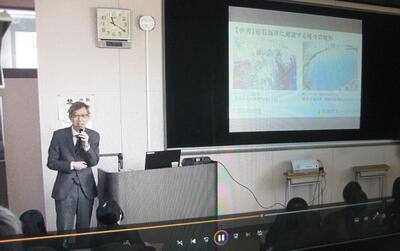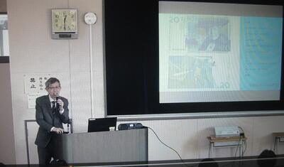 卒業式の翌日、3月2日(月)には、全校生徒(1、2年次)を対象とした「役職定年記念講演会」の機会をいただきました。3、4校時(11時から12時50分まで)に階段教室(総合実習棟3階の簿記会計実習室)を会場として実施しました。