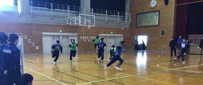 バスケットボールやドッチボールで、各クラスと教員チームの計4チームが熱戦を繰り広げました。