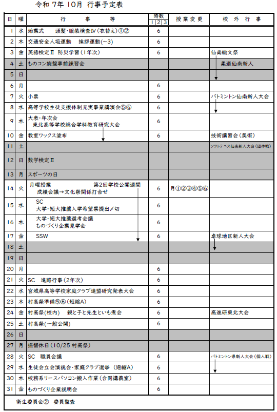 月間行事予定