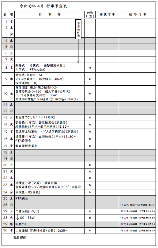 月間行事予定